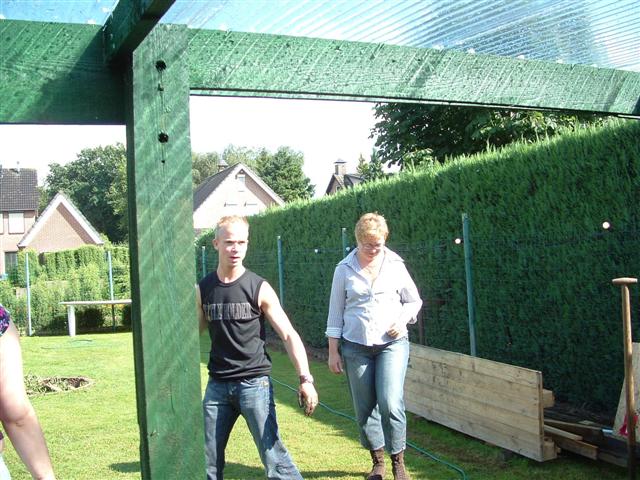 zetten. Gerben is toen begonnen om een WC te maken. De wc komt in de hoek waar toch al iedereen staat de pissen. Maar eerst moet de Heg en
