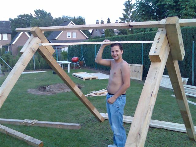 De houten bekisting gooiden ze weg.We hadden het nagevraagd en we mochten zoveel mogelijk hout meenemen als we maar nodig hadden.