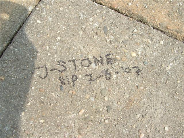 gelegde tegel met J-Stone RIP 07-06-2007. Jeroen ging weer mooi stenen aangeven en Gerben deed ze wel leggen. En daar kwam de eerste