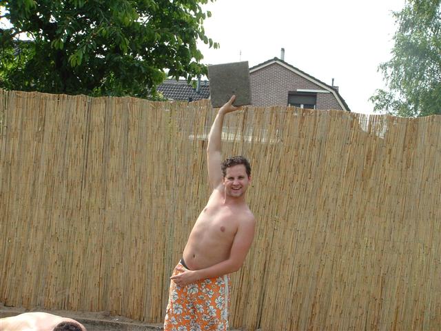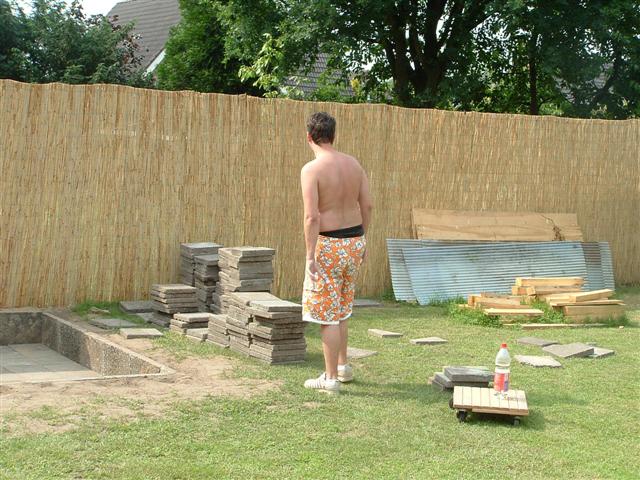 relaxen en om klokslag 14:00 stond Jeroen voor mijn neus. Op naar het slagveld achter in de tuin dus. Gerard is vandaag de hele dag bezig