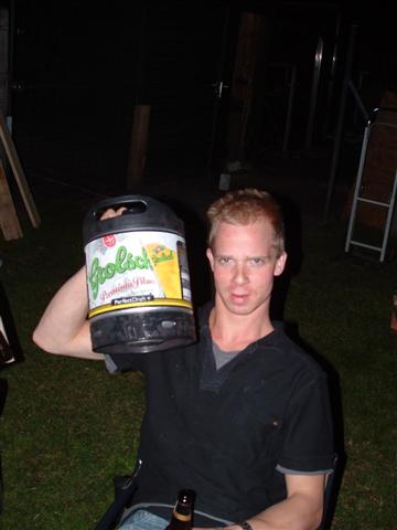 aan waar nog meer gaten moeten komen. We graven een kuil en donderstralen die ton erin. Zand erover en er is niets meer aan de hand. Nu