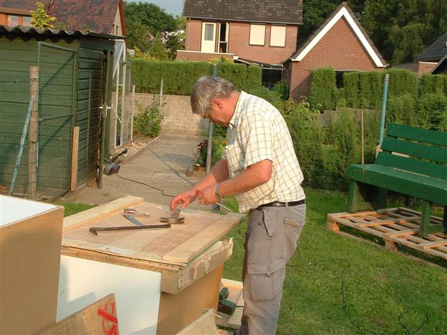 gedachte voorbij en in een mummie van tijd was de kist gedemonteerd. Helaas was het alweer tijd om te gaan eten en om op de fiets te springen