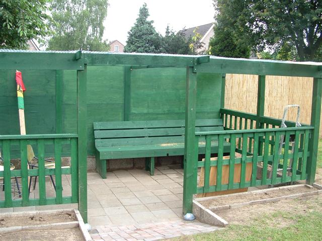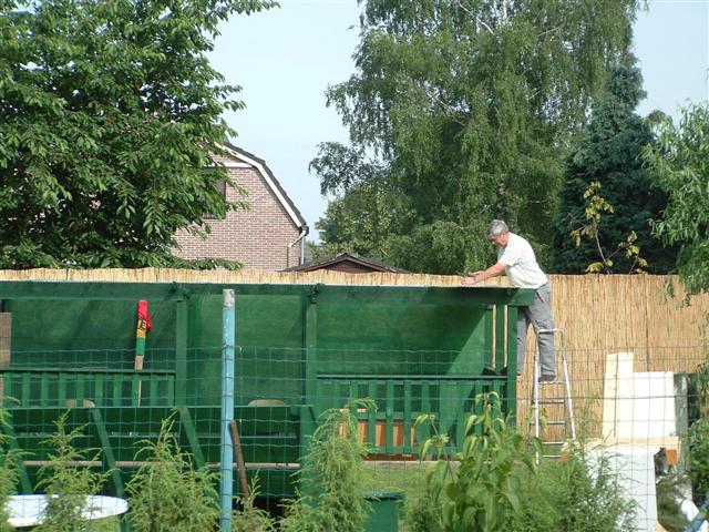 het dak afgemaakt. Even afkoelen tijdens de pauze en met ons pap overlegd hoe de zaken ervoor staan. We hebben toen de bank naar binnen