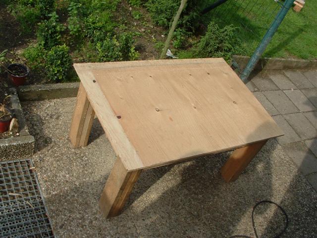 moest nog een balk in het midden voor extra stevigheid. Daarna heb ik er een blad op geplaatst en mooi recht afgezaagd. Gerard heeft vervolgens