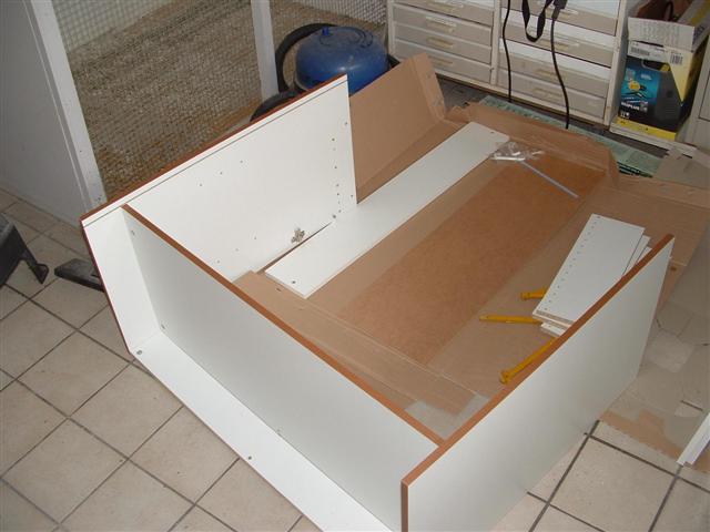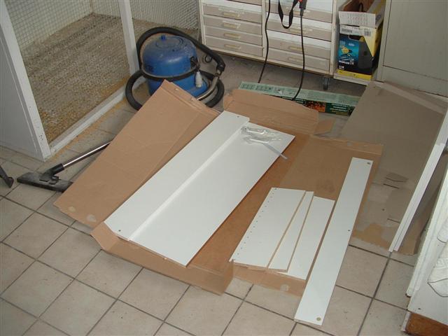 elkaar te gaan zetten. Alle onderdelen uitgepakt en maar de plaatjes volgen om het kastje te monteren. Na een tijdje was het kastje dan ook