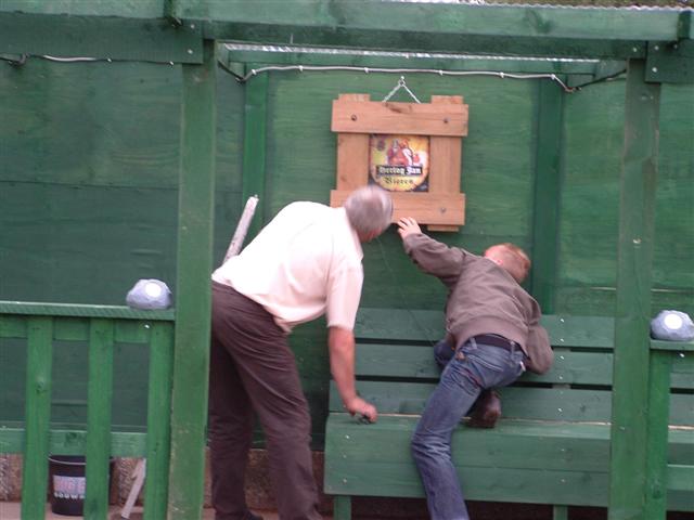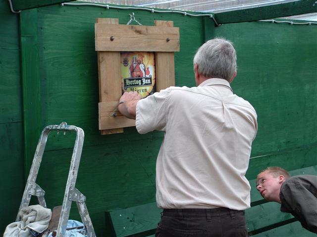 Hij heeft samen met Gerard het Hertog Jan bord opgehangen wat Tom heeft gemaakt. Tom, Ruud en Jeroen waren naar Barcelona geweest voor 3