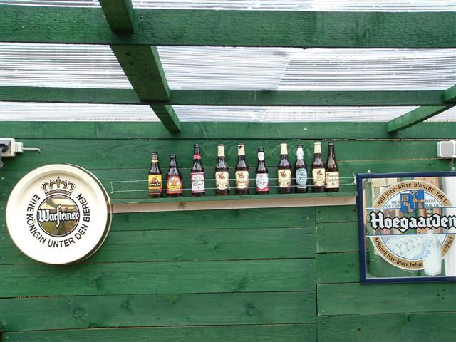 ophangen. Op dit schapje komen de Palm vrachtwagens of nog meer bierflesjes. Even naar binnen want een mens krijgt ook honger, dus een hapje
